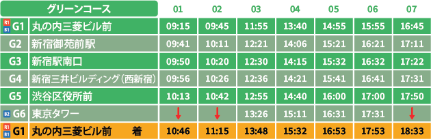気になるコースを選んでみましょう。バス停は都内に19ヶ所あり、どこからでも自由に乗り降りでき、各コースの乗り継ぎもできます。