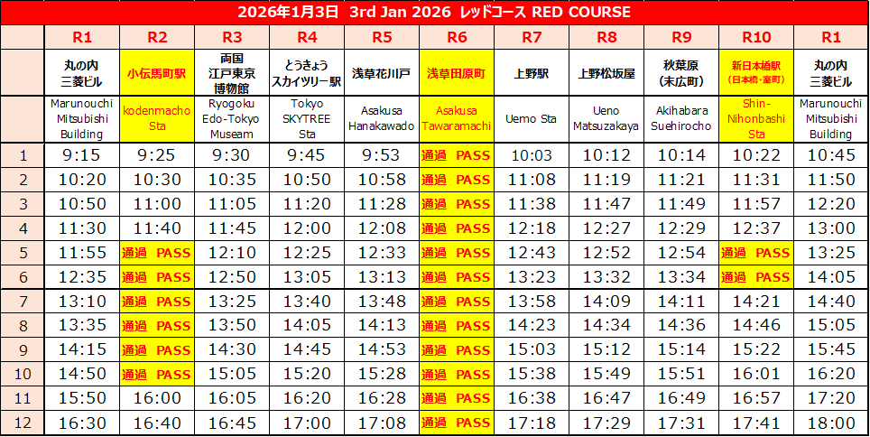 ・浅草地区の交通規制にともない、終日一部区間で迂回運行を行い、「R6 浅草田原町」バス停は