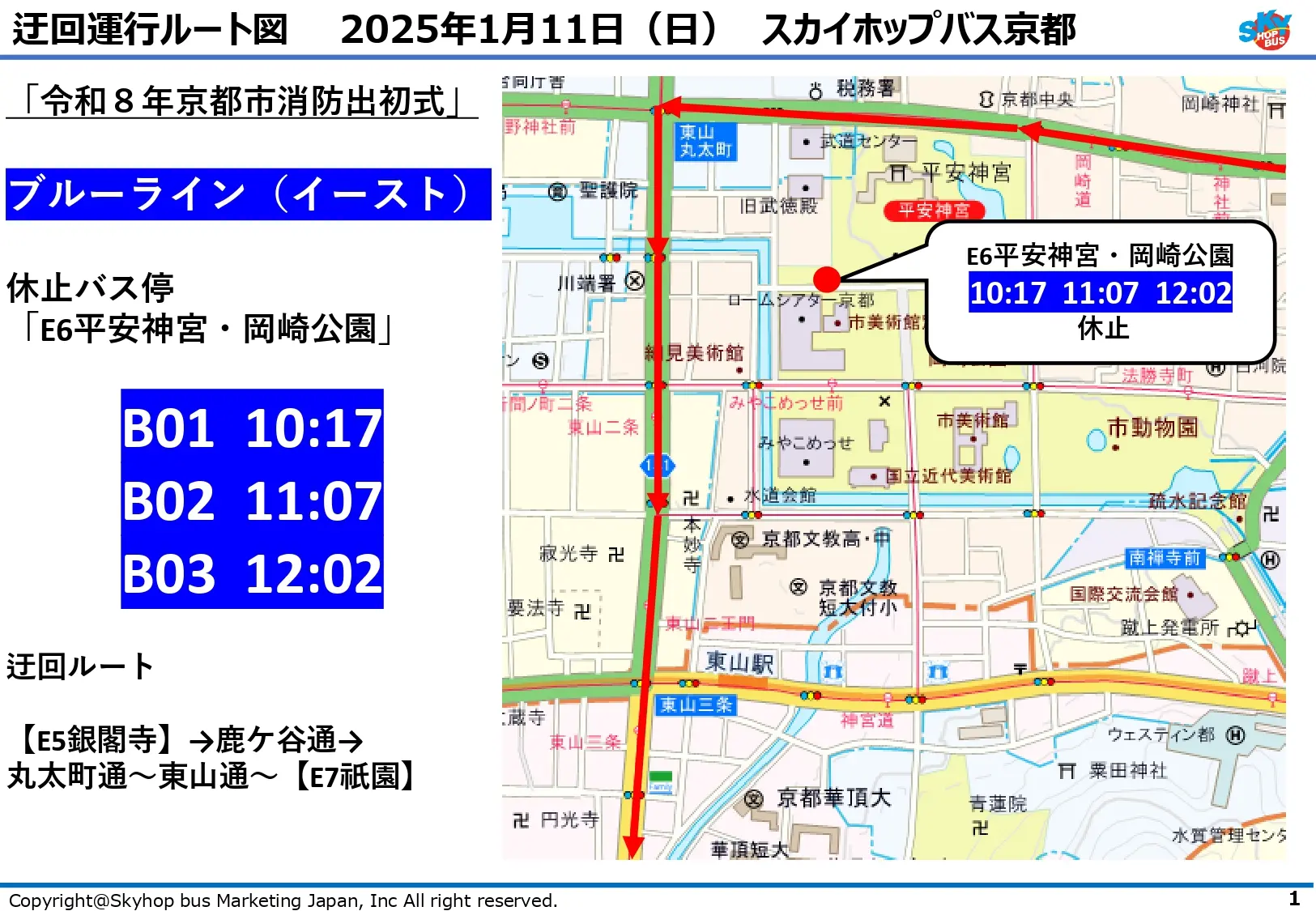 E6 平安神宮・岡崎公園 10:17発(1便)~12:02発(3便)の計3便