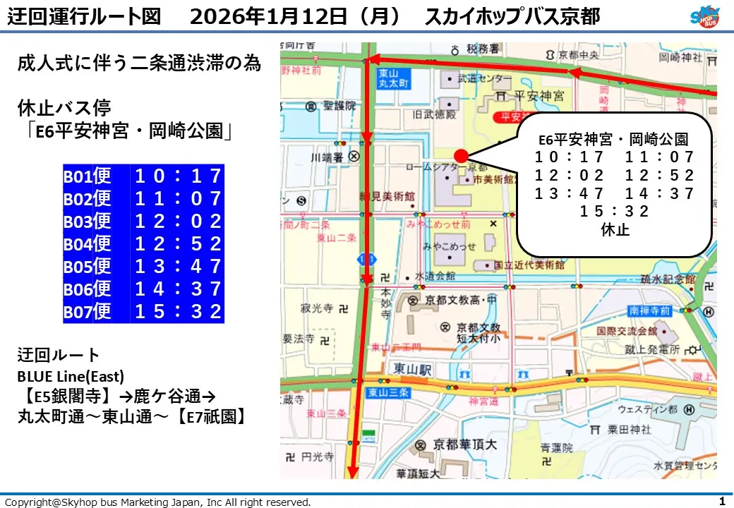 E6 平安神宮・岡崎公園 10:17発(B01便)~ 15:32発(B07便)の計7便