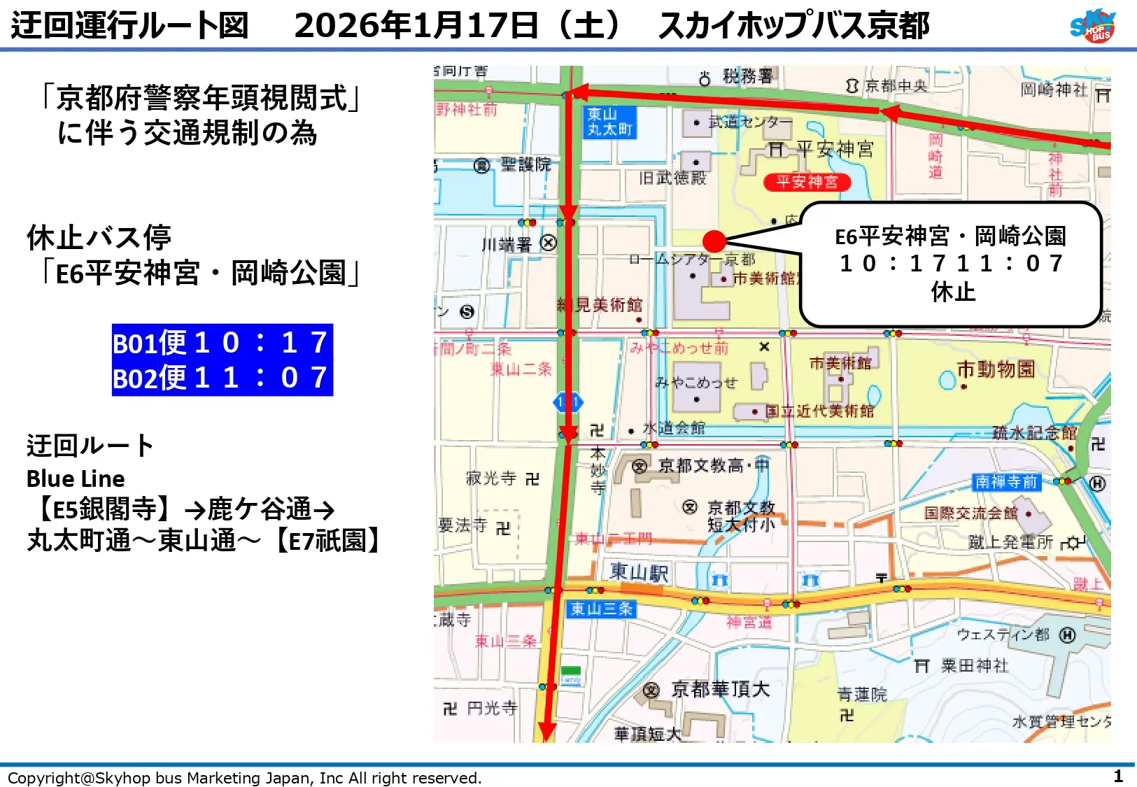 E6 平安神宮・岡崎公園 10:17発(B01便)~ 11:07発(B02便)の計2便