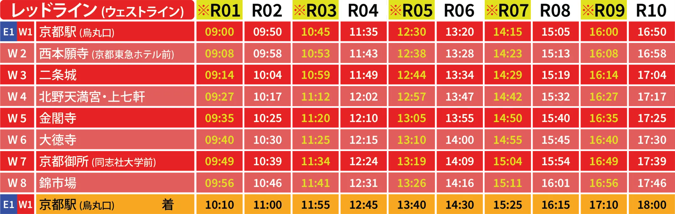 スカイホップバス京都 2025年12月~2026年1月のダイヤについて